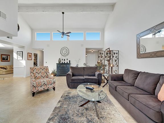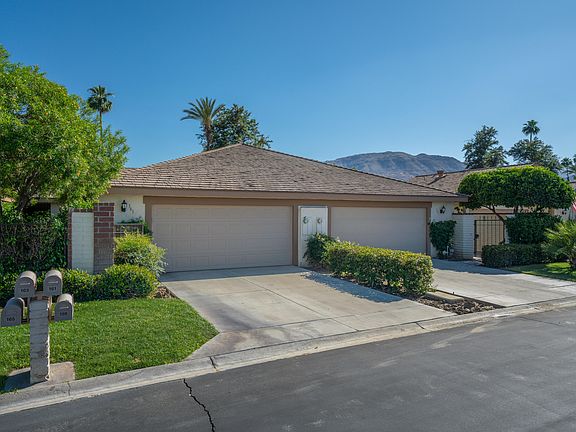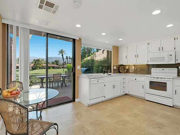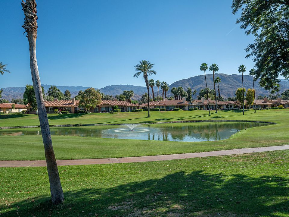 Location, location, location. This home has it all including an amazing location. You will find spectacular southern panoramic views of the golf course, fairways, mountains, and lake views from this updated 2 bedroom plus den, 2 bathroom home in Monterey Country Club. This is the 300 Max floor plan with vaulted ceilings (popcorn removed) and the atrium has been converted to a dining room. There is approximately 1800 square feet of bright and comfortable space for you to enjoy. The wet bar, kitchen and bathrooms have been recently updated with beautiful tile, quartz, and granite. There is an evaporative cooler and the AC was newly replaced in 2018. There is a two car garage and this home is just steps away from a community pool and spa. The outdoor patio has been extended, fenced, and tiled. You will find all new light fixtures and a built in office in the den with shelves and a desk. There is a generous walk-in closet in the master bedroom and shutters in most of the rooms. This home is coming fully furnished per inventory list. Call today to make an appointment to see this very special home.