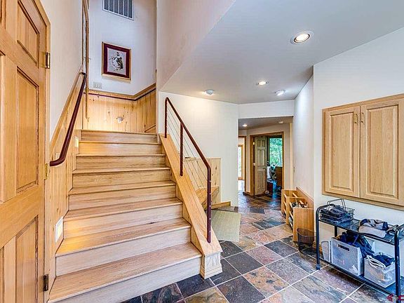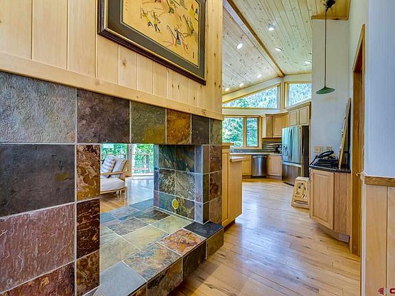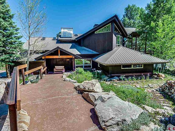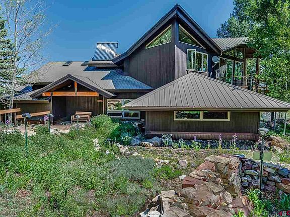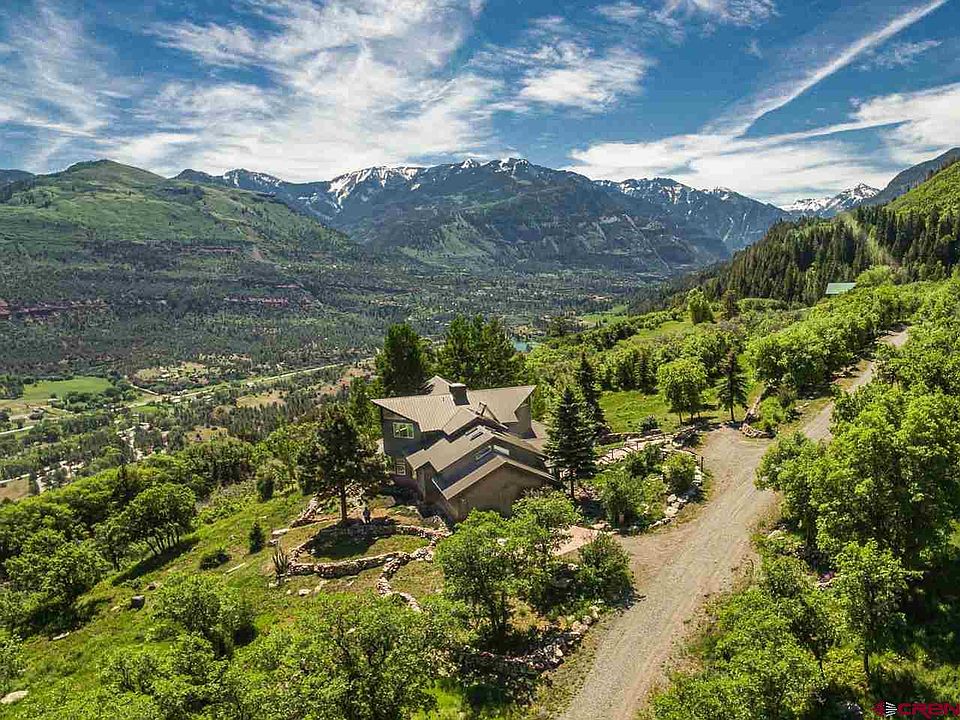 New to the market, never been listed before. The house overlooks the full Ouray Valley. Designed to take in all the natural beauty of the area, views of Ouray Valley, Mt. Abrams, north to grand mesa and the red rock cliffs of the eastern side of Ouray Valley, the Uncomprahgre River and More. The mountain architectural design of the house, allows for natural light and openness through out the home. The open floor plan works well for gatherings or family, from the great cooks kitchen, large living room and dining room as well as a large pantry and dumb waiter for easy transferring of products from the garage. Plenty of room for guest in 3 large bedrooms and 2.5 baths. A fabulous library/office/den, plus a media- Sroom/office/den/guestroom. The exterior deck and patios offer plenty of great outdoor living space, plus enjoy the fabulous views and setting, the landscaping is a wild flower haven with flowers blooming all summer. The home construction is very energy efficient, plus the solar that covers all the electrical costs for the year (puts it pack in the grid then get credits back for power produced ), there is also hot water solar storage as well. Irrigation rights to irrigate around the house and small pond. The house and property has to be seen to be really appreciated. Ask your agent for the full list of construction details and amenities for the house and property, they can be found in the agents additional provisions. If high speed internet is important then this is property will work with you, currently the house has 100 MEGS and is supposed to have close go a GIG all this is thru a special arrangement with Ouray Net Park Estates HOA members have direct access to National Forest thru the Park Estates own locked gate. Some of the furniture could be included in the sale, ask agent for a list of inclusions.