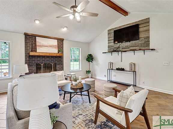 Welcome home to your tastefully renovated acreage! This 3 bedroom, 2 bathroom, brick - ranch style home has fresh paint, new carpet, and new fixtures! The living room features built ins, a fire place, and a stunning high vaulted ceiling. Upstairs has a bonus area, which can be used as a bonus bedroom, office or flex space. Situated on 2.45 acres with a pond, this home provides opportunity for the ultimate outdoor oasis, and is sure to be any nature lovers entertainment paradise! Nestled behind the home is a 34x34 workshop, and an additional 20x40 covered area.. perfect for a boat, RV or any outdoor toys! There is also a covered carport next to the 2 stall garage with an auto opener. Close proximity to Savannah, Tybee, Bluffton, Statesboro & many more! Don't miss your chance to live on this large property and be one with nature, peace & privacy!