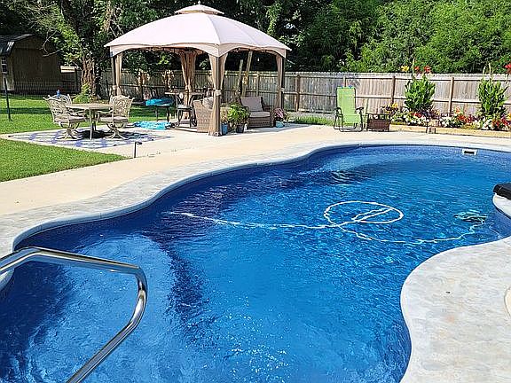 2020 In-ground saltwater SWIMMING POOL --- ROOM TO ROAM ON LARGE LEVEL LOT with shade trees abound! Upgraded -- Stainless appliances, granite counters & MORE! The kitchen offers a vast spread of granite counters and tons of cabinets for storage with access to 2 dining areas for entertaining. Large master suite offers dual walk-in closets, whirlpool tub and separate shower. Oversized side entry garage with extra storage area and expansive concrete driveway for extra cars or recreation space. Convenient Byron location with easy access to I-75, Macon, Warner Robins & beyond. Resort-like backyard, with an in-gound fiberglass saltwater pool and plenty of room for entertaining.
