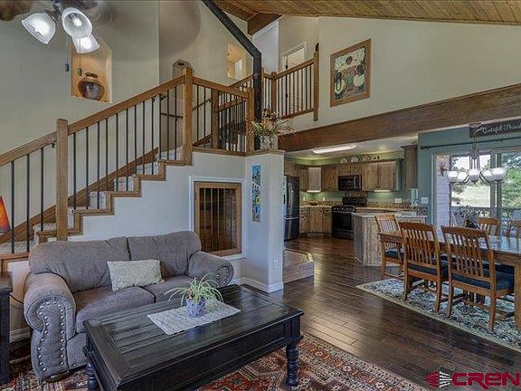 This owners/builder paid attention to all details on this awesome home. With the blown in insulation for energy efficient, to engineered wood flooring, the fire wood storage under the stairway, live edge granite tile that complements the Alder cabinets and even an extra bonus room above the garage-not included in the square footage. From the tongue and groove wood on the vaulted ceilings to the amazing Pagosa Peak mountain views from your kitchen sink, everywhere you turn you are surrounded by quality, views and warmth. Even a wood burning stove that was perfectly place between the living room and kitchen for those cold winter nights. When you walk in, you just know this is the home for you! Oversized garage with loads of shelfs and storage for all your tools and toys. Well maintained garden like grounds, even an area that is fenced off to grow a garden. There are already Plum, Cherry, Apple trees and matured raspberries as an added treat. The primary bedroom is on the main level with guest bedrooms and a loft upstairs. The bonus room of 352 square feet-not included in the square footage can be a play room, office, or even a man cave, so many possibilities. Niches with lights on the stairway to show off artwork or statues. Truly amazing home you don't want to miss. Make your appointment today-this home will not last long!! Voted #1 on Realtor Caravan Tour!!