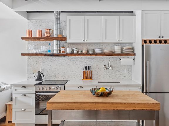 Large one bedroom loft triplex with additional windowed room on basement level. Experience the definition of rustic elegance at 163 North 6th, where contemporary brilliance meets ancient European charm. Live within the walls of one of North Williamsburgs oldest landmarks, the former St. Vincent De Paul Church that has been masterfully restored and converted into authentic loft apartments with its extraordinary beauty intact. Here, modern details and state-of-the-art finishes blend flawlessly with expertly salvaged materials, including original exposed brick, reclaimed Heart Pine pillars and beams, arched stained glass windows, custom steel work and exceptional quirks around every corner. Sprawling layouts, some with soaring 20 foot ceiling heights, and matchless distinction create incredibly rare and unique living spaces not found in NYC today. Enter through the towering building entry and make your way down dramatic hallways, adorned with dark leather walls and inlaid wood floors made from 100-year-old shipping boxes. Inside you will find, a private terrace for all of your al fresco needs and skylights throughout the apartment. The custom designed open kitchens contain Caesarstone countertops, impeccable penny tiled marble backslashes, Kingston Brass fixtures and boast a gourmet appliance package of top-of-the-line appliances with Bosch washer/dryers, Fisher-Paykel dish drawers and stainless steel Bloomberg appliances. Each residence, unique in its own right, contains bathrooms with reclaimed brick walls, pressed tin ceilings, steam showers and custom built vanities with imported stone. Wide plank hardwood floors lend a loft-like feel to each spectacular room. Parking available for an additional cost. 163 North 6th is located around the corner from the L train at Bedford Avenue, only one stop outside Manhattan as well as countless bars, cafes and boutiques in one of NYCs most desirable areas. Transport yourself back to the prohibition era in time for cocktail hour with oysters, infused gin and debonair bartenders at Hotel Delmano. Grab a bite at Sweetwater, catch a movie at Williamsburg Cinema or head over to 35-acre McCarren Park, which has dog runs, a public swimming pool, fields for soccer and baseball and a Green Market on weekends. Book your appointment today to experience this one of a kind building!