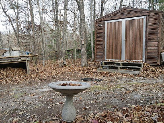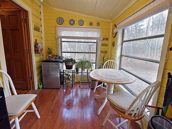 Log Cabin in the woods. 2BR/1BA with cathedral great room, all wood interior, pine wood floors in main cabin. Finished sunroom adds additional sq ft to the tax card sq ft. Furnished. Covered screened porch. Thermostatically controlled gas log fireplace and blue flame gas heater. 2 window air units. NEW 2022 ROOF!!!! Full bath has been modified with a Handicap shower. Small ramp makes access Zero step entry into the home. Hardwood trees throughout the gentle property. Storage shed included. Just at 10 miles to town. Public water, paved county road, Circular drive, fire pit area. Wonderful little package. OLD restrictions on file might be expired.