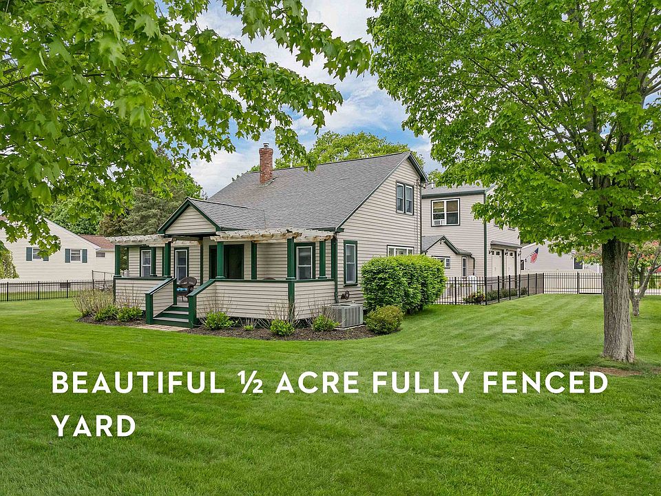 Swimming poolGas stoveOutdoor showerHardwood floorsFenced half acre yardPlush lawnOversized doors