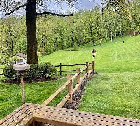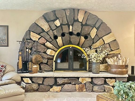 ONE OF A KIND GORGEOUS 3BR/2.5BATH 2077 SF CEDAR AND STONE HOME SITUATED ON ALMOST 9 ACRES!!! Built in 1985 by the seller it boasts shutler cabinets, granite countertops, cathedral ceilings, surround sound, Nu Tone whole house cleaning system, beautiful finished rec room with wet bar, pond, covered deck, fruit trees, private drive and many, many other features. Relax on the covered deck and enjoy the wildlife. Workshop area in the 2 car attached, heated garage and also a detached 2 car garage with an overhead monorail hoist system, water, electric and telephone. Home is down a private drive but is walking distance to gas station and store and just minutes from the interstate.