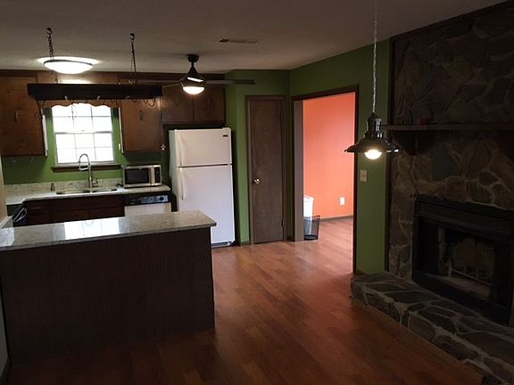 Excellent opportunity with room to grow. This 1096 Sq ft 2 bedroom 1 bath home sits on over 7 acres just outside of Hamilton. Cozy living room with fireplace, Kitchen with granite countertops and two oversized bedrooms. Master closet features sliding barn door and cedar interior. Large wrap around porch and two exterior shop buildings. Beats renting any day!