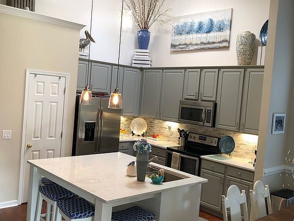 The yard is full sized and provides plenty of room. Views of the lake and golf course make this a prime property. Newly repainted, new appliances, new screened in porch, fenced backyard, updated kitchen and baths, new hardwood floors. Open floor plan with great light and super close to the Bluffton School complex. (RLNE1976397)