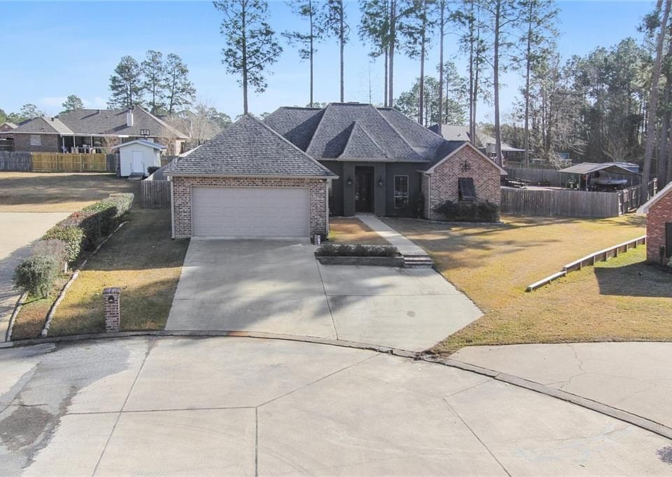 Located in a quiet Cul-de-sac, this 2015 custom Country French home offers a triple split floorplan with 9 and 10 ceilings w/ crown moldings & 8 tall doors throughout. The open & airy floorplan is perfect for entertaining! The kitchen features Black Stainless Steel 2018 appliances, granite slab counters, & a kitchen island/bar w/ brick facade. The family room offers a wonderful wood-burning fireplace w/ brick hearth. The master suite offers a huge walk-in closet, dual vanities & separate garden tub & walk-in shower. The backyard offers a beautiful inground 16x32 saltwater pool built in 2017, 12x24 storage building/shop, 18x21 covered boathouse/mower storage & is completely privacy fenced. The AC/Heat was replaced in 2019 w/ a larger 5 ton Trane Deluxe variable speed High efficiency heat pump (10yr. Transferable warranty incl. parts & labor). This home is move in ready for you. Dont miss your opportunity to own this staycation in Pineville school districts & zoned for JI Barron.