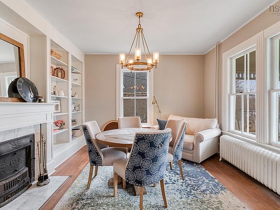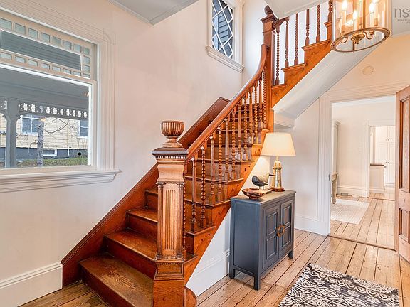 This distinguished house was built around 1909 by Owen Maryatt for Captain Daniel Meisner. It beautifully combines Greek Revival architecture with charming Queen Anne details, creating a unique and sophisticated home. The house features a gable roof and a wrap-around veranda that contributes to its traditional beauty. The intricate woodwork inside and outside retains its historic character, with detailed wooden staircases, solid wooden doors for privacy, and newly refinished hardwood floors. Decorative hinges add a touch of period authenticity. The amazing chef’s kitchen is the heart of the home, with custom cabinetry that fits the character while offering modern functionality. It includes a propane oven and range, a secondary electric oven and warming oven in the pantry, soapstone countertops, and a central island with a dishwasher and breakfast seating. The cabinetry includes numerous soft-close drawers and pull-outs for convenience. The home has undergone major renovations over the last 8 years, and the bathrooms have been updated with contemporary plumbing, elegant fixtures, and glass-enclosed shower. The front room, with built-in bookshelves surrounding the original coal-burning fireplace (now a decorative feature), offers an ideal space for a library or home office. The bedrooms are large, and the laundry room on the second floor could easily be converted to another bedroom and ensuite. The property features 70-foot-tall Linden trees, said to be brought back by Captain Meisner from his travels, and the backyard is fenced with a large wooden deck and shaded gazebo. Four large, raised beds are available for growing your own kitchen garden. This remarkable property at 163 Pleasant Street merges the best of historical elegance and modern luxury, inviting you to embrace Bridgewater's rich heritage and offering a sense of home that’s hard to match.