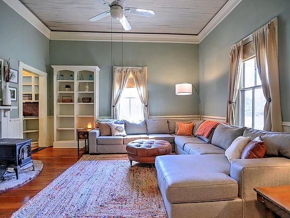 Charming historic home, built in 1909, with loads of original details such as hardwood floors, spacious rooms, decorative fireplaces and high ceilings. This home offers great space for enjoyment and entertainment. The main level boasts a welcoming foyer, an inviting living Room with wood burning stove and separate dining room with built-in bookcases. The chef's kitchen with white cabinets and great counter space opens to the cozy light filled 4-seasons room. Two bedrooms and a full bath with dual vanities, soaking tub, separate shower. And the separate laundry/mud room with door to the back deck. Upstairs large master suite with its own den/sitting area, office area and plenty of storage. Master bath features a shower, dual vanities and walk-in closet. Relax on the rocking chair front porch and enjoy the renovated decks in the back overlooking the large, level and recently fenced back yard (dog proof wooden fence). Whole house water filtration system included. Home is located in quaint downtown Mansfield, on a quiet street, just steps away from Mansfield Elementary School and its playground. Some easy renovations would make this a stand out home, ready for your finishes or perfectly livable as it is! Priced to sell, Sold AS-IS, Cash or Conventional loan ONLY, Multiple offers - present highest and best offer by 7 pm on Sunday Feb 21st.