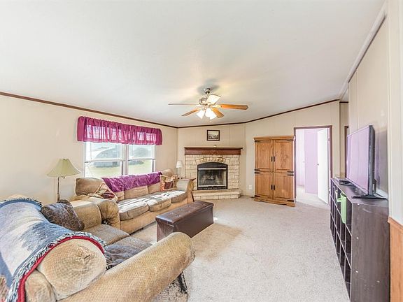 LOVELY LITTLE BEAUTY situated on TWO ACRES with four bedrooms, two bathrooms, and two living rooms. Kitchen is open and super spacious with a ton of cabinets and counter space. Second living area has a load of natural sunlight and a decorative wood burning fireplace. Master bedroom en-suite has a room for an office nook, or reading area and features a bonus room, perfect for an office, nursery, or perhaps a craft studio. The master bath has a walk-in shower, soaking tub, and dual sinks. Outside features a 12x24 storage building and a 30x132 greenhouse. NEW METAL roof installed in 2019 and the AC is only two years old.