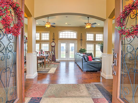 If you are looking for that ultimate home for entertaining, look no further. This magnificent executive home is featured in the Holiday Home Tour. You will find it in the upscale neighborhood of Fox Chase Estates. This home boasts of 4-5 bedrooms; 3 full baths; media room; open concept living and dining combo; kitchen open to family room with propane gas log fireplace that opens out to a deck complete with outdoor kitchen plumbed with water and propane and custom built-in seating. Granite in kitchen, bathrooms, and laundry. Large chef's kitchen is equipped with high end stainless Professional Frigidaire appliances with 64' wide Refrigerator and an extra chiller. Custom stainless exhaust hood, loads of storage and custom maple cabinets. The home is plumbed for central vac. Tray ceilings, custom crown molding and crown trimmed casings throughout. Master has private patio and spa ensuite complete with 10'x4' spa shower, jetted and heated tub with tons of