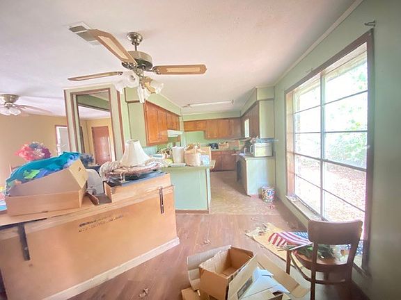 Ranch style brick home on slab with 11 wooded acres. The home has approximately 1351 sf of living area, 3 bedrooms, 1- 1/2 baths, central air & heat, sunroom, kitchen- living room (open floor plan), snack bar, large utility room and small front porch. Home needs a little TLC. The land is all wooded that is about a 5 year regeneration, natural wildlife habitat, rolling terrain and has no trails which allows the new owner the ability to place food plots & trails as they see fit. Only $99,500