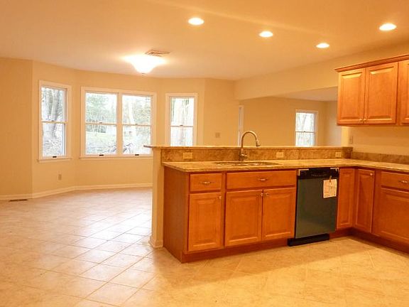 Contemporary open floor plan providing one level living. This 3 bedroom, 2-1/2 bath ranch has been TOTALLY RENOVATED and is situated on a 2 acre wooded lot. Foyer entry opens to spacious living room. Fantastic Kitchen features abundant amount of maple cabinetry, pantry, granite counters, stainless steel sink, breakfast bar,stainless steel appliances, ceramic tiled floors and high hat lighting. Separate dining area opens to kitchen and living room providing a perfect floor plan for entertaining. The Master Bedroom suite features a walk-in closet, Master Bath with Jacuzzi whirlpool tub and fully tiled shower. Second bedroom also has a walk-in... closet and full bath. Powder room and third bedroom complete the main living area. Direct entry to 2 car attached garage inside entry to basement. New Septic, paved drive Long and short term lease