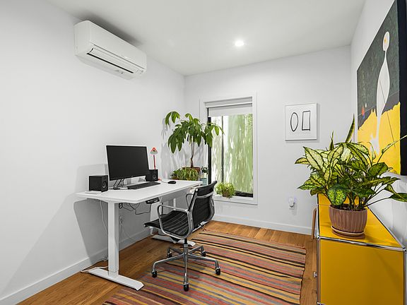 Roof Deck with open City Views. A mint condition floor-through two-apartment with modern finishes and spacious interiors, this pin-drop-quiet 2-bedroom, 1.5-bathroom home offers a quintessential Williamsburg lifestyle close to Whole Foods, Equinox, and dozens of trendy dining and nightlife options. The home begins with a tasteful entryway that flows through an efficient single-line kitchen into a spacious living and dining area with a powder room and a trio of west-facing oversized casement windows. The kitchen is equipped with a modern matte black faucet, chic stone countertops, custom cabinets, and full-size stainless steel appliances including a dishwasher. Both bedrooms sit on the opposite side of the apartment and overlook a tranquil backyard with mature trees. Each one has a deep reach-in closet and shares access to a lovely full bathroom with stylish penny tile floors, contemporary fixtures, and a walk-in shower. One of the bedrooms can easily be used as a home office. The home has beautiful hardwood floors, recessed lighting, central air conditioning, and a stacked washer and dryer. FORMA is a newly renovated rental boutique located in the heart of Williamsburg. Residents enjoy a common rooftop terrace, a serene backyard garden, and a video intercom and security system with smartphone control. The building is seconds from some of the most exciting restaurants, bars, cafes, and shops in the city, including L'Industrie Pizzeria, Ainslie, Pokito, Radegast Hall, and the Butcher's Daughter. Nearby green spaces include Domino Park, Bushwick Inlet Park, and McCarren Park. Accessible public transportation options include the NYC Ferry and the G and L subway lines.