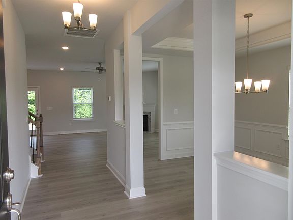 Move in ready 2307 plan with 3 car garage. Below Spacious Kitchen and Family Room flow into your Separate Dining Room allowing more area for those celebratory gatherings. Dining Room has a beautiful trey ceiling with crown molding and wainscoting. Tons of natural lighting in this beautiful home with upgraded stainless steel gourmet appliance package, walk in pantry, granite countertops, upgraded tile backsplash and island for entertaining. Primary suite has a gorgeous trey ceiling with extensive trim. Primary Bath has a large walk in closet, tile walk in shower, double vanities, and soaking tub to relax in after a long day. Enjoy your favorite beverage on your private patio and wooded back yard area. Charlestowne is 6 miles to Smithfield downtown, outlets, shopping, restaurants, I-95 and Hwy 70 bypass. Minutes to I-40, Princeton, Goldsboro and Raleigh.