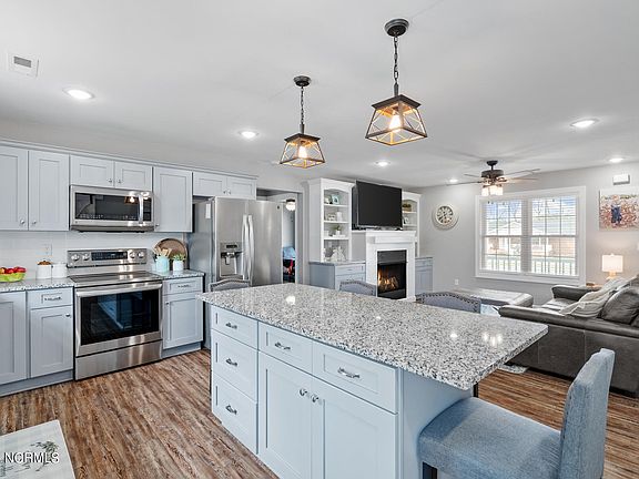 Welcome to this stunning almost new construction home, meticulously built in 2021-2022! Boasting modern elegance and thoughtful design, this property offers the perfect blend of comfort and sophistication. Step inside to discover a spacious 3 bedroom, 2 bathroom layout with an inviting open floor plan, ideal for both daily living and entertaining guests. The highlight of the home is the luxurious wet room, featuring a walk-in shower and bath all in one convenient space, providing a spa-like experience right at home. Indulge in the serene ambiance of the primary bedroom's charming reading nook, perfect for unwinding with a good book after a long day. The kitchen showcases elegant granite countertops, a stylish farm sink, and sleek recessed lighting, creating a warm and inviting atmosphere for culinary adventures. Cozy up next to the gas fireplace on chilly evenings, adding a touch of ambiance and warmth to the living space. Additional highlights include a convenient drop zone, perfect for keeping belongings organized. Outside, enjoy the convenience of a 20x24 workshop with a 12 ft lean-to carport, offering ample storage space for tools and equipment. Plus, experience privacy and tranquility (once they grow up) with a natural barrier of beautiful crape myrtles lining the property line, creating a peaceful oasis to call your own. Don't miss out on the opportunity to make this exceptional home yours!