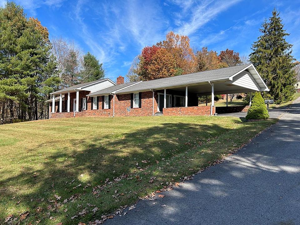 Well planned, quality, all-brick, one level, ranch offering a great location with 1 acre. Situated close to the towns of Cedar Bluff and Richlands. Offers 4 spacious bedrooms, 3 full baths, formal living /dining room, den with brick fireplace w gas logs, spacious entry foyer, additional den, spacious laundry room, 2 car carport, bricked rear patio, and front covered bricked porch that offers beautiful mountain views. also features updated bath, flooring, kitchen, paint, and heat pump. Lots of closet space. 24x12 brick outside workshop. two separate water heaters. LOCATION! LOCATION! LOCATION