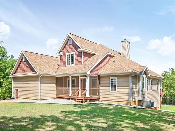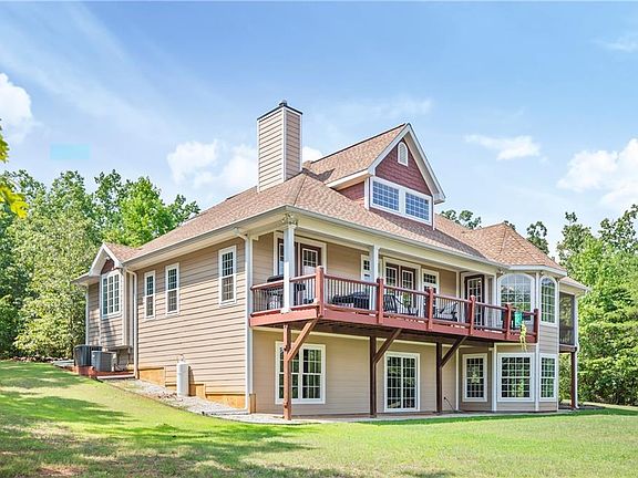 Private estate situated on 11+ acres with mountain & Lake Hartwell views. Wander the property looking for deer or ride your 4-wheeler on trails the sellers use. Gourmet kitchen with soft-close cabinets, center island and granite counters. Huge GR with a vaulted ceiling that includes cedar accents, built-in cabinets, gas log fireplace and hardwood floors. Master with trey ceiling, double-sink vanity, soaking tub, separate tile shower and cedar lined walk-in closet. Two more bedrooms (with cedar lined closets) and full bath upstairs plus walk-in attic space. Full unfinished basement is stubbed for a bathroom. Covered decks and screen porch for outdoor entertaining. Property includes 20 fruit trees, 25 blueberry bushes. Driveway recently paved.