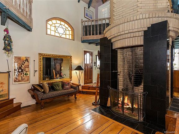 Your search for a year-round Connecticut shoreline sanctuary is over with this nontraditional treasure, custom built in 1980. Spanning more than 2,000 square feet, there's plenty of room for family and friends, and delightful architectural touches provide a chic backdrop for lounging and entertaining. Hand-carved wood doors, stained glass windows, 200-year-old brass-pegged chestnut floors and soaring blue-stained exposed beam ceilings run throughout. Wrought from more than 4,000 bricks, the spectacular two-story fireplace acts as the functional heart of the home providing warmth across the lower level. The chef's eat-in kitchen is beautifully equipped with stainless steel appliances and ocean views, and cozy living spaces invite you to curl up with a good book. Nod off to sleep to the sounds of the waves in the stunning second-floor master suite featuring a spiral staircase to a prow-like balcony. There's another bedroom suite on this level, a loft bedroom above and a fourth bedroom on the main level.Enjoy glorious views of Duck Island, Clinton Harbor and Long Island from the expansive oceanfront deck, or step down to your sandy beach for swimming and sunning. Located less than two hours from Manhattan by car and just 30 minutes from New Haven's Metro-North station, this fantastic waterfront hideaway is as accessible as it is beautiful. Don't miss the opportunity to own this exquisite waterfront oasis .
