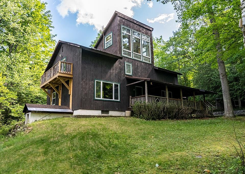 Escape to this custom built contemporary Adirondack home boasting a park like private setting complete with seasonal brook and pond, views, a spacious garage and outbuildings. Interior features include a remodeled kitchen with custom carpentry and granite countertops. The large living area has a stone wood burning fireplace and is open to the dining room. On the second level are four bedrooms, a full bath and office area. The unique third level was used by the owners as a greenhouse and is plumbed with a sink work area. Also included are a house generator, wood shed, basement with walk-in access and a combination wood/oil furnace. Home is subject to subdivision to include 8.5 acres parcel or the entire parcel of 17 acres can be purchased with the home for $299,000. Complete privacy yet 5 min to the center of Elizabethtown.