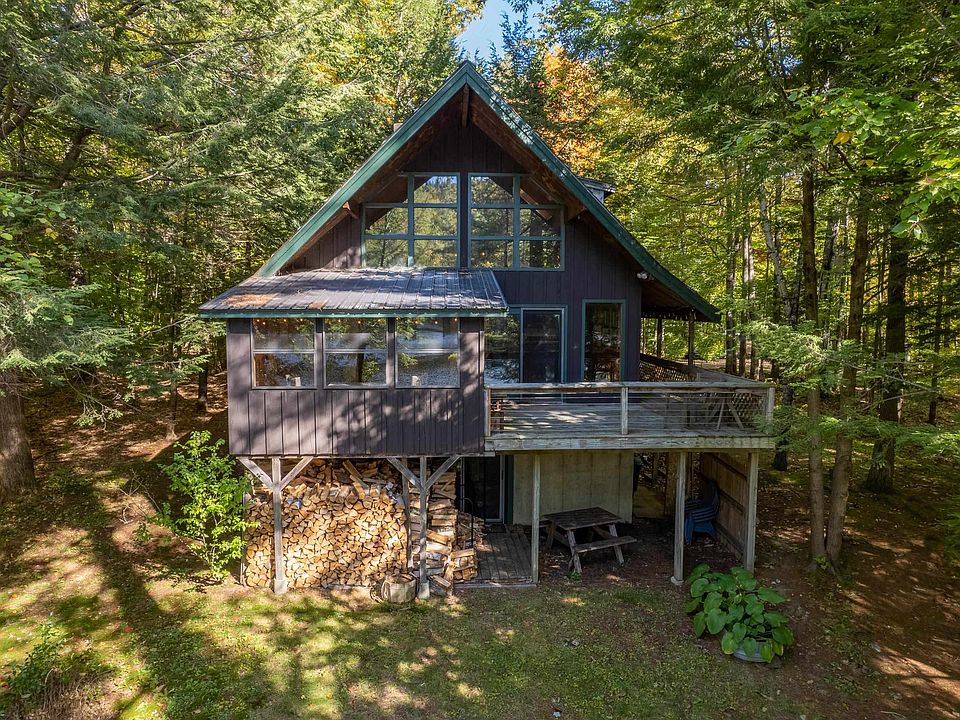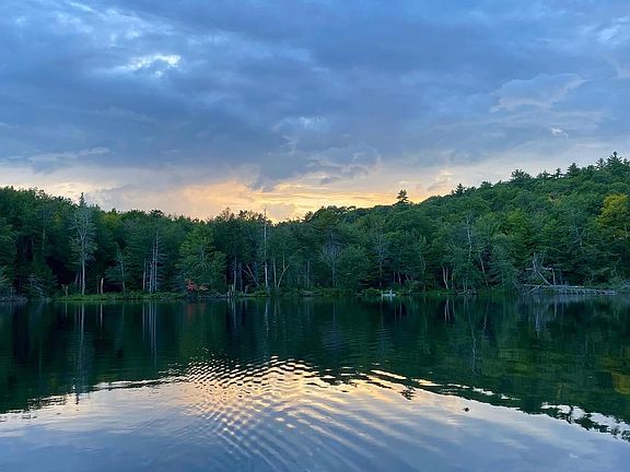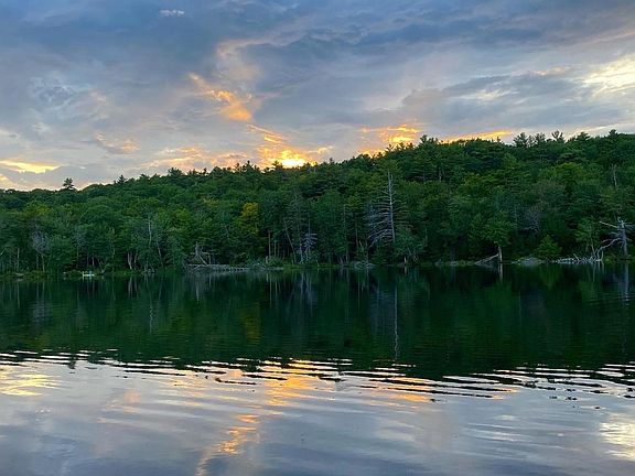 Welcome to your magical, 2.15 acre private waterfront retreat with 370 feet of owned waterfront on Sky Pond in New Hampton NH. Rarely do homes come up for sale on this body of water. Sky Pond is 14 acres and is absolutely crystal clear. The house is set off of the road down a private driveway and leads to a flat lot with a fantastic outdoor space and a fabulous view of the water. Enter into this open concept floor plan abode with cathedral ceilings and a wall of windows letting in an abundance of natural light. The pine wood floors are breathtaking as they flow throughout. The first floor has 2 bedrooms, a full bath with custom tile floors and one of a kind wood vanity. The kitchen is open to the living/dining room and has extraordinary handmade cabinets with custom handles, stainless steel appliances with a gas cooktop. Your family will stay cozy in front of the wood stove with brick surround and a stunning wood mantle.Upstairs is a loft area and another huge sleeping room with its own bathroom that has a wood slab top and a vanity with incredible, intricate details. The 3 season room is where you will be sipping your coffee looking out at the once in a lifetime water view. The home also has a large basement that could be for future expansion and is great for storage. Immerse yourself in nature and peace at this truly one of a kind property. Less than 20 min to Plymouth, Meredith and Tilton. Delayed showings until 10/15/22 at OH 12-2.