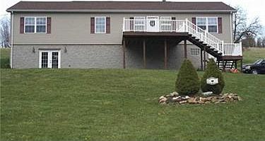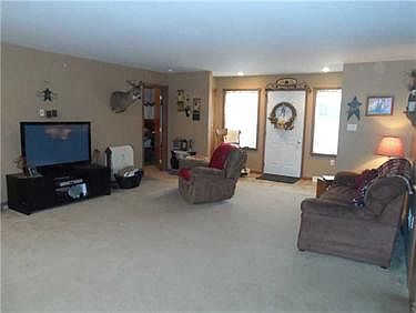 Privacy abounds here with this home that is only 8 years old & situated on 5 acres complete with a pond and new steel barn. Nice floor plan featuring master suite with walk in closet & full bath, main floor laundry, sliding glass door off dining room that open up to the back yard and spacious living room. Walk out basement features ceramic tile, and tongue & groove knotty pine. Energy efficient all electric home with outdoor wood/coal burner. Seller to retain oil, gas, & mineral rights.