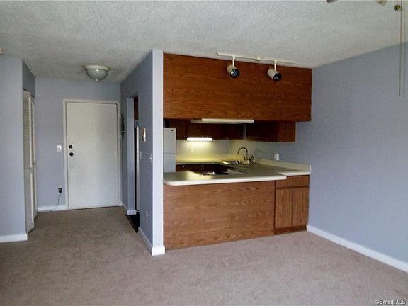 Charming, move-in ready, main level Ranch unit in secured building with new wall to wall carpet and freshly painted interior. Newer hot water heater(2015). Washer and dryer(2012) in unit. Storage unit in basement. Reserved Garage parking for one car with elevator access to unit from garage. Additional parking in paved complex lot. Downtown location. Close to shopping and public transporation. Low common charges include water/sewer charges. Why rent when you can own!!