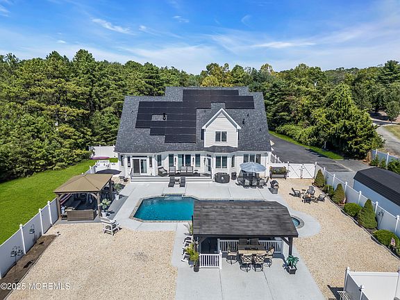 This extraordinary home is the one you've always wanted but didn't know where to find. Perfectly set back off the road on 3.2 private acres, it offers the ultimate blend of elegance, comfort and lifestyle. Step inside to a grand 2 story great room with fireplace, hardwood flooring, and abundant natural light. The first-level primary suite features walk-in closets and a private bath, while a junior suite with full bath and a Jack & Jill bath provide ideal accommodations for guests. The home also includes 4 spacious bedrooms, 3.5 baths, a living room, dining room, breakfast bar, additional bonus room upstairs and laundry room with side door access. Designed for convenience and peace of mind, this residence is equipped with a security system, generator, solar panels, new roof, 3-zone HVAC, and lawn irrigation system. A 2-car garage, shed and 30x50 steel pole barn add unmatched storage and functionality.