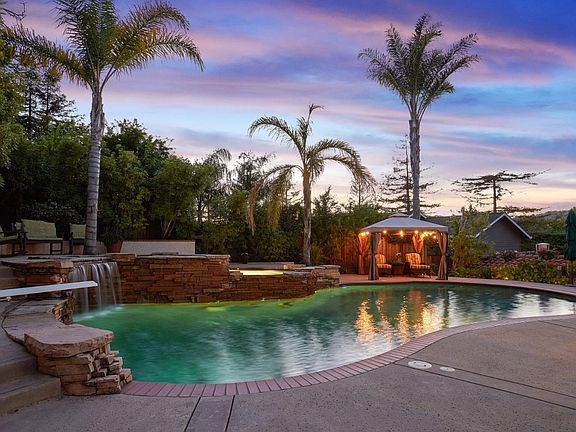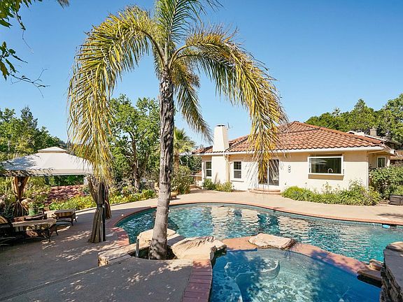 Resort living in Emerald Hills! Sophisticated Mediterranean style home sits atop a large & private knoll. Everyday is vacation in this sun drenched southwest facing oasis with waterfall pool & spa! Formal entry, expansive living & dining rooms. Eat-in kitchen with bay window opens to spacious family room & patio - for seamless indoor/outdoor living! Sumptuous master suite with balcony & adjoining nook, walk-in closet, dual sink vanity & treetop jetted tub. Two additional bedrooms & full bath with dual sink vanity on main level. Downstairs is a fully appointed apartment with its own front door, address & mailbox perfect for a home office, au-pair, in-law or rented unit. Yoga studio, possible wine cellar & detached workshop. Plenty of off-street parking for family & friend get-togethers. Enjoy the serenity of nature amongst trees with a convenient mid-peninsula location & easy access to the 280 fwy. Delightful walk to restaurants & shops on Canyon Road. Nearby Edgewood Park hiking!