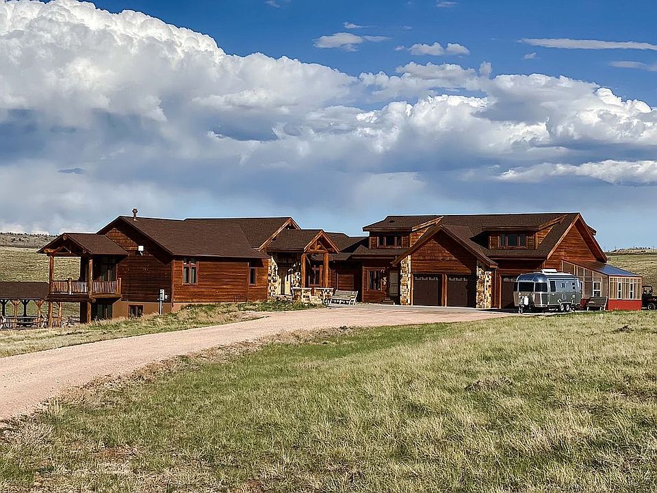 A fantastic 6500SF+ Custom Constructed Log Home Ranch on 70 Acres with barns, shops, corrals, and perimeter fencing approximately 12 miles south of Laramie Wyoming.