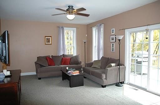 Set back off the road, on 3+ acres, is this beautiful Colonial style home tastefully decorated throughout. You'll love the open floor plan on the first floor featuring kitchen with breakfast nook and island; family room, dining room and living room with gas fireplace. Access to the deck overlooking the private back yard. Half bath on 1st floor plus a separate laundry room. Second floor offers a spacious master bedroom suite with tray ceiling; master bath with jacuzzi tub and a walk-in closet. Two additional bedrooms plus a wonderful bonus room perfect for a play room or guest room and a full bath. Walk out basement. Hot water heater is just over a year old. Central vac, central a/c and security system. Feel like you are living in the country yet close to schools, major routes, shopping and the Quabbin Resevoir. Go to www.belchertown.org to see all that Belchertown has to offer. Truly a very special property!