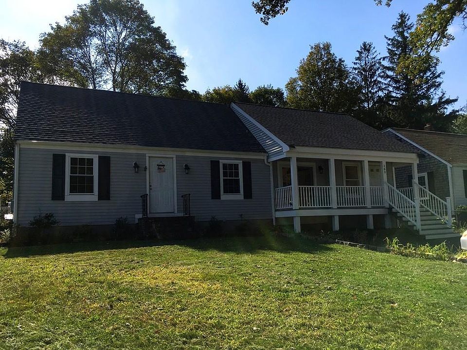 Welcome home to your stunning renovated Cape! Four bedrooms, Two full bathrooms and an abundance of custom touches and natural light throughout! New down-to-the-foundation 22x23 great room with cherry mantled propane fireplace and bamboo flooring flowing right into your open concept kitchen featuring ceramic, hand-scraped bamboo and solid mahogany trimmed countertops. New composite front porch off of the great room. All new kitchen appliances, updated 200 amp electrical service and many built in energy efficient LED light fixtures. Living room, first and second bedrooms have newly restored oak hardwood floors. First and second floor full bathrooms beautifully renovated with custom built-ins. Third and fourth bedrooms have custom built in dressers, free standing closets and brand new laminate flooring. New Roof. Nothing to do but move in to this one!