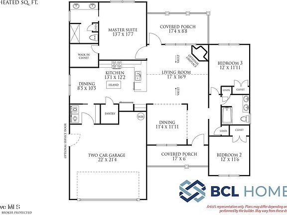 Two additional bedrooms are well-positioned, offering privacy and easy access to the shared full bathroom. Outdoor living is elevated with not one but two covered porches—one at the front and another at the back—ideal for enjoying the coastal Carolina breeze. The home also features a two-car garage with an optional service door for convenience.