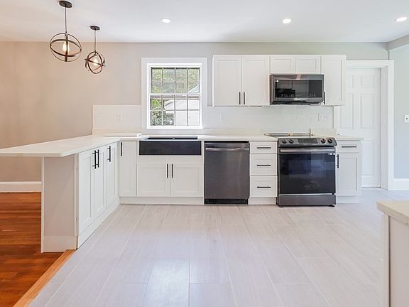 Beautifully renovated oversized cape style home on a double lot encompassing over 1.5 acres. As you enter the home quality surrounds you; boasting two living rooms, with each having its own fire place. The spacious and contemporary kitchen, complete with brand new appliances and a convenient breakfast nook, features a bay window that offers a stunning view of the picturesque private backyard scenery. The exquisite formal dining room, primary living area, and the entire second floor are adorned with gleaming hardwood floors. The first-floor bathroom features dual sinks, a beautifully tiled shower, and laundry hookups.. Moving up to the  second floor, you'll discover three bedrooms with a full bathroom. Additionally, the basement offers a partially finished space with a generously sized bonus room. An absolute must see! Open House Sunday 6/11 - 11:30am -12:30pm!