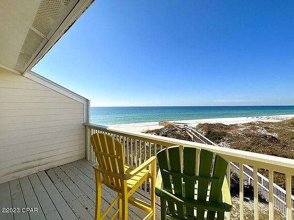 SPECTACULAR 3BR/3BA GULF FRONT CONDO JUST STEPS TO SUGAR WHITE SAND BEACHES IN THE GATED COMMUNITY OF SEA CLIFFS! Water views surround this must-see multi-level floor plan creating a seamless connection between indoor and outdoor spaces. Newly updated throughout with easy to maintain luxury vinyl flooring, the main level includes a comfortable living space adjoined by a well-equipped kitchen upgraded with granite counters, stainless steel appliances and breakfast bar seating. Extend your entertainment space to the gulf facing balcony for breathtaking sunsets & water view. Upstairs, the second level offers a jack and jill bathroom with two showers connecting a waterfront bedroom with sundeck and a bunk room with peek-a-boo bay view. Nestled on the top floor of this end unit is the primary suite outfitted with a tiled glass door shower, double vanity and walk-in closet well-lit with panoramic water views through a large-sized sliding glass door. Private balcony access is the ideal spot for waking to the sunrise & taking in the salt air breeze. Already an income producing property, this unit is sold fully furnished & rental ready. Enjoy covered parking and an outdoor shower on the ground level. Boardwalk beach access is just a short walk away in addition to a community pool & playground area. Start booking guests right away! Take the 3D Tour and call for a showing today!