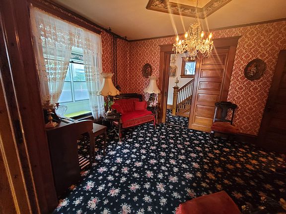 First time on the market in 36 years! Unique opportunity awaits you in this 1881 Victorian home in downtown Newaygo! Currently being used as a boarding house this home has 5 bedrooms and 6.5 bathrooms. Original oak woodworking throughout this home including large pocket doors, 2 stairways going to the second floor and a totally blank slate on the 3rd floor with a full bathroom. Most of the roof is slate. In addition to all this there is a 3rd floor that is a blank slate with beautiful views out every window. Outside there is a large 2 story Carriage house. Paved driveway off M37 and Wood street with large parking area. Home could use some TLC but is priced accordingly.