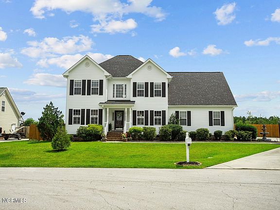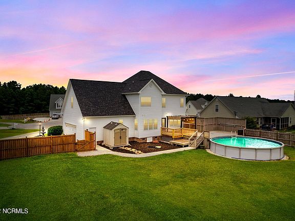 Nestled in a Cul de Sac, Sitting on 1.45 Fenced Acres, sits this 4 Bedroom 2 1/2 Bath Home literally minutes away from the Brand New Clear View Elementary School! As you drive up you will notice the Side Load Garage, Extended Driveway with Tons of Parking and Landscaping that features Mature Azaleas, Low Maintenance Rubber Mulch and Three Tier Fountain!! Inside Boasts LVP flooring throughout the Entire Home, minus the Tiled bathrooms and upstairs Laundry Room, Quartz Counters, Stainless Steel Appliances to include a Bosch Dishwasher, Pantry and Mudroom!! The Natural Light pours in as the back of the home is Windows and French Doors with built in blinds overlooking the property that Backs Up to a Tree Line! Downstairs features, Formal Dining Room, Flex Room, Kitchen and Breakfast Nook open to Family Room with Remote Controlled Gas Fireplace! The Master Suite has a Trey Ceiling, Separate Shower and Whirlpool Tub, Separate Vanities for Extra Space, Walk In Closet and Water Closet! Out Back you will find a Massive, Private, Multi Tiered Deck with Hot Tub Pad, Overlooking a 24' Round Pool and Two Outbuildings! The Crawlspace was Encapsulated with a Dehumidifier in 2021 and Roof was installed in 2020 with 30 year Architectural Shingles! All it needs now is You!