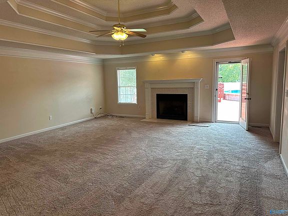 - Features: Ceiling Fan(s), Crown Molding, Carpet, Fireplace, Tray Ceiling(s)