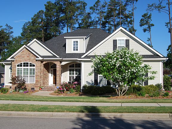 Wonderful craftsman style brick ranch in Woodstone in North Augusta. Just minutes from I-20 and quick access to the GreenWay from the neighborhood. Split floor plan with owner's bedroom and 4th bedroom/office on one side and two additional bedrooms on the other side of the home. Hardwood floors in the foyer, dining room, kitchen, and breakfast room. Custom plantation shutters on all windows. Ceramic tile in all baths and laundry, granite countertops, stainless appliances, stained cabinets with eat-in bar. Custom built buffet with upper cabinets in the breakfast area. Large bedroom or bonus room upstairs with full bath. Upgraded ceiling fans in all rooms. Covered front porch and screened back porch with ceramic tile floors. 12X16 storage building with power. House has been well cared for and is in excellent condition.