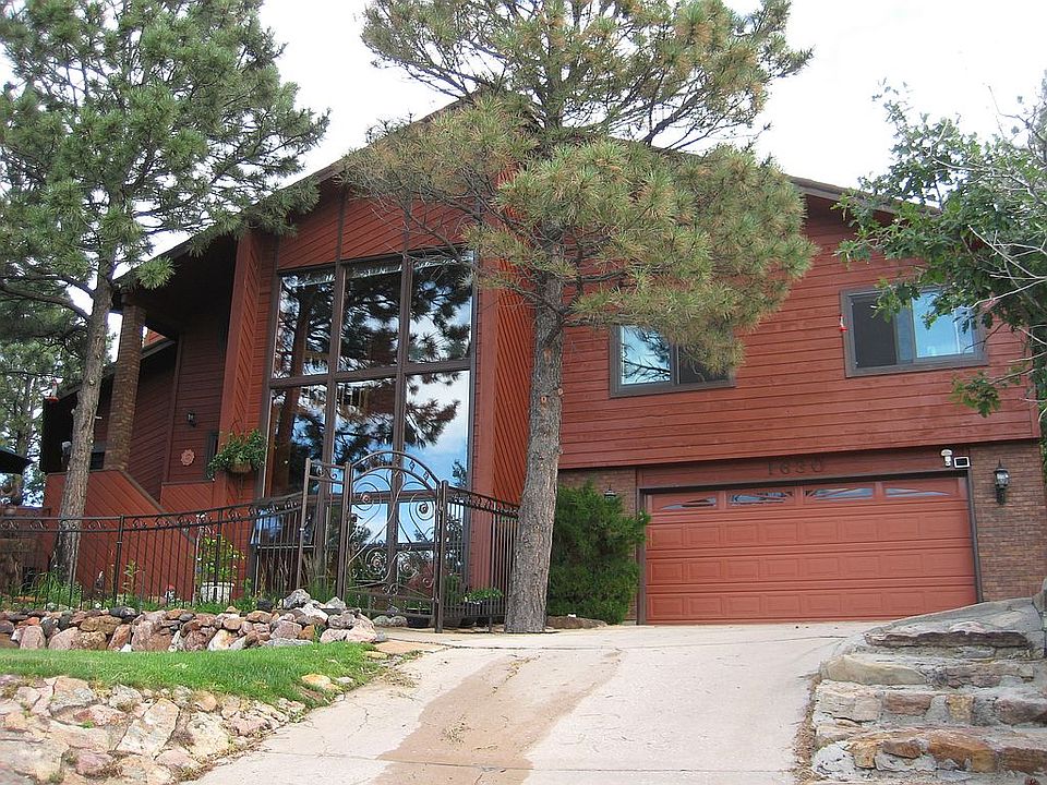 1630 Allegheny Drive site includes two land parcels. Primary residence sits on 23,058 sq ft. Owner purchased the adjacent additional buildable land which is 56,628 sq ft (1.3 acre) to assure privacy. Total sq ft of property is 79,686 sq ft however adjacent lot is not included in the Zillow property estimate. 1630 Allegheny Drive has a medium incline from the street; building pad has a front driveway; elevated view is of the front range mountains over trees. There are no apparent adverse easements or conditions. The subject property is a good-quality 4-level style home with a built-in 2-car garage and large walkout deck. It is of a contemporary style and has numerous custom features and upgrades: on-demand hot water heater, stainless steel appliances, kitchen island and granite counter tops. Carpeting, hardwood floors, wine room, milgard windows, steel 50-yr. roof, Behr fire-retardant exterior paint, extra R-30 roof insulation, built-in TV in main BR, brick floor/sidewall and large passive solar windows in entry atrium, sun-penetrated shades, etc. Artificial turf in front yard with great privacy and views.
