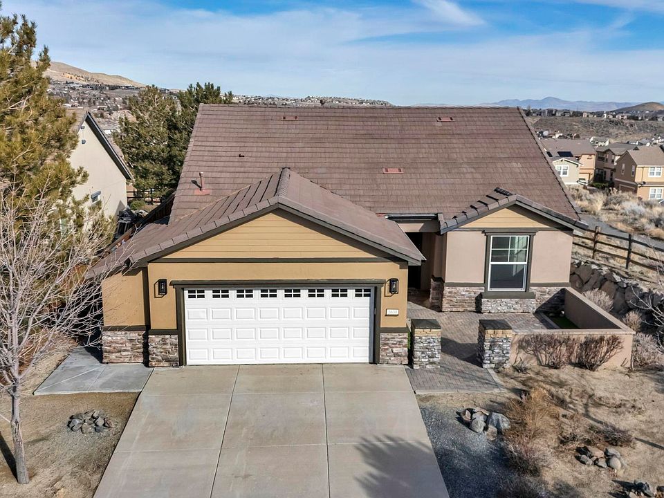 Nestled on a prime lot near the South Slope of Peavine Mountain in Reno is where you will find this beautifully updated 2-bedroom, 2-bath home with a spacious office that offers the perfect blend of privacy, and breathtaking scenery. Step inside to discover brand-new flooring, fresh paint throughout and new quartz countertops in both bathrooms. Enjoy the open-concept great room and kitchen, which welcomes natural light from it's desirable east-facing orientation., The built-in entertainment center in the living room adds both style and functionality, making this space perfect for relaxation or entertaining. Imagine warm summer evenings in your west-facing courtyard, soaking in the glow of vibrant sunsets against the backdrop of the majestic Sierra Mountains. With no rear neighbors and direct access to miles of scenic walking trails, this home offers a peaceful retreat. Located just a short stroll from the stunning Sierra Canyon Clubhouse, you'll enjoy access to world-class amenities and an active lifestyle in this premier 55+ community. With NO state income tax, clean air and four mild seasons, Northern Nevada is a great place to call home!