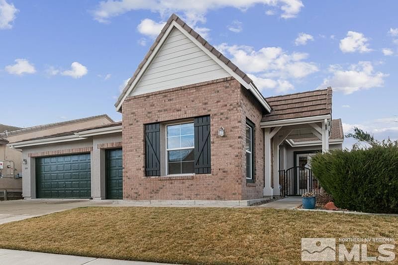 This elegant home is located on a quiet cul d’ sac in Waterford, a community of all single level homes in Double Diamond Ranch. Steps away are miles of walking and bike paths that offer quiet natural wetlands leading to nearby parks that the entire family can enjoy. From the moment you open the front door you’ll enjoy the expansive scraped walnut wood floors throughout the open floor plan accented by tall ceilings, and custom cabinetry., The 2,608 square foot home features 4 bedrooms, 3 full bathrooms and a 3 car garage on a completely landscaped lot with views of the Sierra Nevada Mountains. The chef-friendly kitchen features granite counters and backsplashes with under-cabinet lighting. Stainless steel appliances throughout include a microwave, gas cooktop, dual convection ovens, and refrigerator with icemaker. For entertaining the 16’ center island is topped with beautiful rainforest marble. The home provides an ADT alarm system and has been beautifully maintained, including all new plumbing. The owner is a licensed Nevada Realtor. The house is vacant, clean and ready for immediate occupancy. Seller is a Nevada Real Estate Licensee.