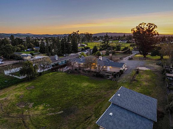 Buena Vista—translated from Spanish means "good view." Perched atop a rolling hill in Livermore, the Buena Vista Hilltop Ranch promises an unparalleled living experience. This marks the first time this property has been on the market in 40 years. As visitors enter through the gated property, the driveway guides them through a picturesque landscape of pepper trees and fragrant eucalyptus trees. Upon entering the home, guests are immediately enveloped in a farmhouse lifestyle. With soaring ceilings, recessed lighting, and large windows, this ranch home reveals stunning views of vineyards and rolling hills. The living room welcomes cozy gatherings by the crackling passthrough fireplace, while the formal dining room awaits memorable feasts and celebrations.The primary bedroom offers a serene sanctuary complete with a spacious walk-in closet adorned with cedar floors, custom-built storage and en suite bath with large soaking tub. Step in the backyard to find a detached finished shed providing opportunity for an additional workspace, gym or hobby room. Situated only 2.5 miles from Downtown Livermore, this expansive property is ideal for animals and livestock. This home sits on one of the most sought-after streets in Livermore, making it a coveted sanctuary in the heart of wine country.
