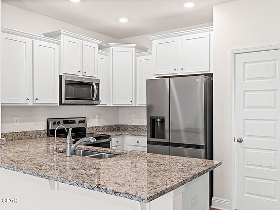 Conveniently located near all that Lynn Haven has to offer including shopping, Cain Griffin Park, and the Lynn Haven Sports Complex. This 2021 built, 3 bedroom 2.5 bath townhome located in the newer community, Landin's Landing, has LVP throughout the main floor and bathrooms, granite counter tops, stainless appliances, recessed lighting, 9 ft ceilings, large breakfast bar in the kitchen, dining area, and plenty of space for entertaining both inside and out with a rear patio. The master bedroom has a a large walk-in closet, dual vanity countertops in the bathroom, and a standup shower. For storage, there are two additional closets in the upstairs hallway and a laundry room. Room for 3 cars to park with the single car garage and 2-car driveway, additional parking located just a few doors down next to the community's retention pond. Home also comes complete with the Smart Home Technology package that integrates with the garage door, front doorbell, and the thermostat.