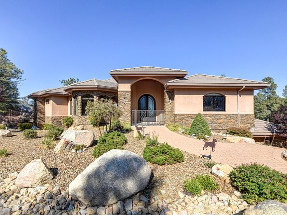 WOW!!! ......Here is one of the most EXQUISITE homes in Prescott, located in the GATED Prestigious Hassayampa Village Community, complete with 5727 Square Feet of CUSTOM features starting with 4Bedrooms, 7Bathrooms, 4Car Garage w/Epoxy Floor, 4 Fireplaces, plus Den, ELEVATOR, Full IN-LAW Suite, HEATED POOL, Hot Tub, & ''TONS'' of Stone Work inside and out....Starting with Stacked Stone Accents, extensive Paver Walkway/Driveway, Concrete Tile Roof, Custom Steel Entry Door, Large Covered/Tiled Deck, Formal Dining Room with Coffered Ceiling, Beautiful Travertine floors, Vaulted Ceilings w/8'' Solid Alder Doors, Copper & Stone Accents, Plant Shelves, Ceiling Fans, Surround Sound, lots of Zero Edge/Wood Cased Windows, & Custom Window Coverings. Home has a Gourmet Kitchen with Walnut Cabinetry, (Dovetailed/100% Extension/Soft Close Drawers & Cabinet Doors) GRANITE Countertops, Tiled Backsplash, Lg ISLAND w/Veggie Sink, Wolf & Subzero Stainless Steel Appliances (Induction Cook Top), Eat In Kitchen Nook, Wet Bar & Large Walk In Pantry. The Master Bedroom is Massive with its own Fireplace, Large Walk In Closet w/Built ins, dual Vessel Sinks, Jetted/Garden Tub, Huge Snail Shower, & access to rear Deck. Downstairs you will find the Large Family Room (w/Pool Table), another WET BAR, the aforementioned In Law Set Up with Full Kitchen (Stainless Steel Appliances), Fireplace, w/Lower Patio Access. Additional features include multiple Laundry Rooms, Laundry Sink, Built In BBQ, Central Vac, (4)Zone HVAC system, full Fire Suppression System, 75 Gallon Hot Water Heater w/Recirc, Water Softener, Storage Cabinetry & Utility Sink in Garage.....& the rest you will have to come and see for yourself !!!!