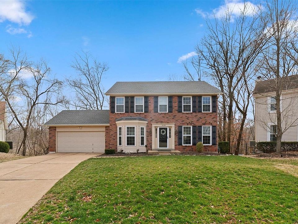 Beautifully maintained 4 bedroom, 2.5 bathroom home in Ballwin! This home is located at the end of a quiet cul-de-sac and backs to woods for extra privacy. Walking in, you will see a formal dining room and living room on either side of the staircase. The dining room connects to the open-concept kitchen with stainless steel appliances, gorgeous cabinets, and quartz countertops. Walking outside from the kitchen is a large deck perfect for entertaining. The family room has a stately wood-burning fireplace surrounded by custom built-in cabinets. Completing the main floor is an updated powder room. Upstairs, you will see three spacious bedrooms that share a hall bath and a large primary suite. Each room has ample natural light and ample closet space. One of the bedrooms has been converted into a large dressing room. The finished walk-out basement is ideal for an extra family space. Outside, there is a hot tub and porch area so you can enjoy the outdoors no matter the weather!