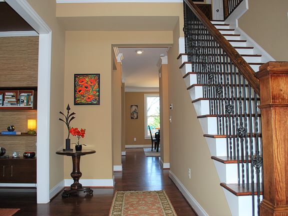 3 sided brick on the largest lot and the largest sq ft in the sub-division . Front porch, formal living room, dining room, office area, den with built in shelving, fireplace, hardwood floors, extensive crown molding, kitchen w/ granite counters, tall dark cabinets, tiled backsplash, master suite w/walk-in closet w/closet system, dbl vanity, separate glass shower/tub, 2 additional guest baths with private baths, unfinished terrace level w/stubbed bath and bedroom w/sitting area, extra large 2 car garage, huge deck , fenced in backyard and hot tub. Swim/gym amenities