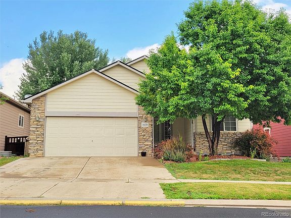 Updated ranch style home in a quiet neighborhood! Multiple schools and parks nearby, 6 minutes from Prairie Center shopping center and highway access. Easy commuting to Denver and DIA, and 35 minutes from Buckley SFB. This home features an improved, open concept floorpan with vaulted ceilings and big windows for tons of natural light. Check out the new light fixtures, fresh paint and modern door hardware. Cook up a family meal in the updated kitchen with stainless steel appliances, breakfast nook, bar lights and tons of pantry space. Plenty of space in the family room for a large sectional sofa or bookcases along the walls. The newly painted master suite can comfortably fit a California King bedroom set with room to spare, and double vanities in the master bathroom make getting ready for date night a breeze. Two spare bedrooms down the hall can be used for kids bedrooms, guest rooms or out-of-town family, office space or his/hers gaming rooms! Below boasts a huge unfinished basement with three windows, rough-in plumbing, a brand new A/C unit (Aug 2022) and a brand new 50g hot water heater (Aug 22). Perfect for storage area, additional bedrooms or a great entertainment space. The private backyard is the perfect relaxing spot, with shade from the giant trees and two 15ft garden beds ready for someone with a green thumb. Sprinkler in front and back makes yard maintenance a breeze. This house is ready to be yours!