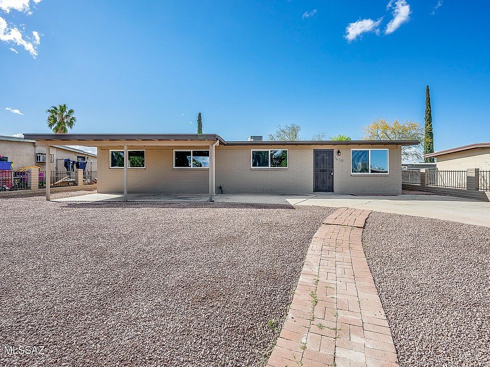 Completely remodeled ranch-style home near shopping and restaurants. This 4 br/2 bath home has bright, and spacious living areas, a functional layout, beautiful, new kitchen with stainless steel appliances, granite countertops, and breakfast bar. Dual-pane windows, new HVAC unit, new carpet in bedrooms, and wood-looking tile throughout. Property is completely gated, with a carport, covered paito, and separate studio perfect for workshop or home office. Use your imagination! Additional storage off the back patio, cactus garden, and low maintenance landscaping throughout the property.